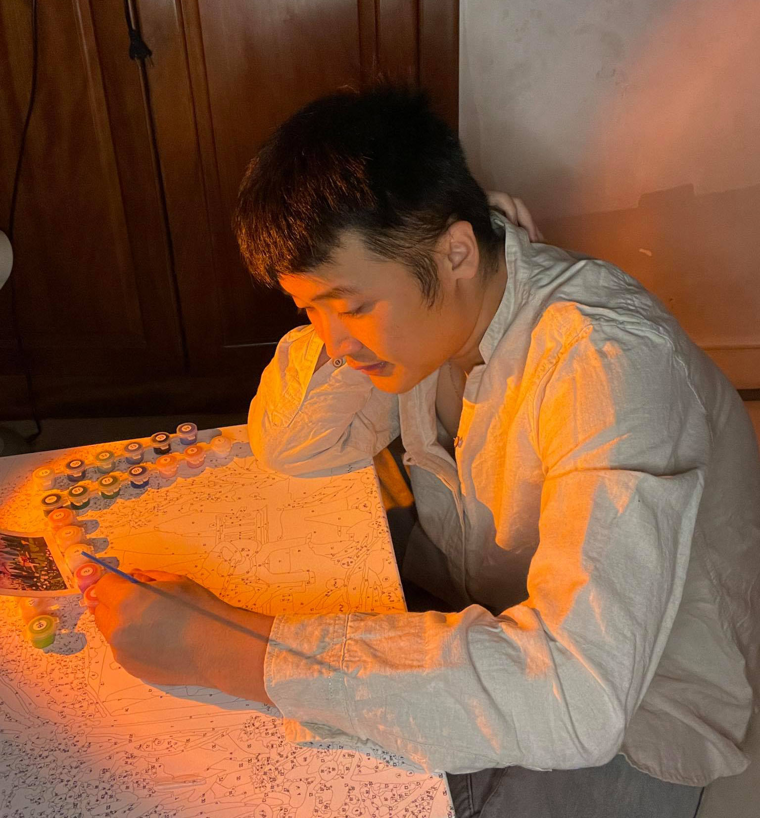Vũ cho biết, do đặc thù công việc làm về marketing và sáng tạo nên bản thân rất thích những gì liên quan tới thiết kế, màu sắc, hình ảnh,… Vũ còn hào hứng khoe, từ khi theo đuổi thú chơi tranh tô màu theo số, cậu bạn cảm thấy tư duy mỹ thuật, bố cục và óc sáng tạo của mình được cải thiện rất nhiều, thậm chí còn góp phần làm cho công việc có hiệu quả và chất lượng tốt hơn. Đây là giá trị mà Vũ tự hào nhất ở thú chơi lành mạnh này, mặc dù ban đầu cậu bạn chỉ đơn giản là muốn giải tỏa căng thẳng sau giờ làm việc.