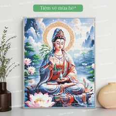 Tranh đính đá Bồ tát Quán Thế Âm đã căng khung 40x50cm có backboard KHUYẾN MÃI - ƯU ĐÃI