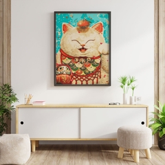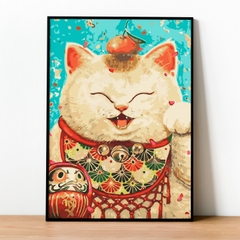 Tranh số hóa Mèo chiêu tài đã căng khung 40x50cm
