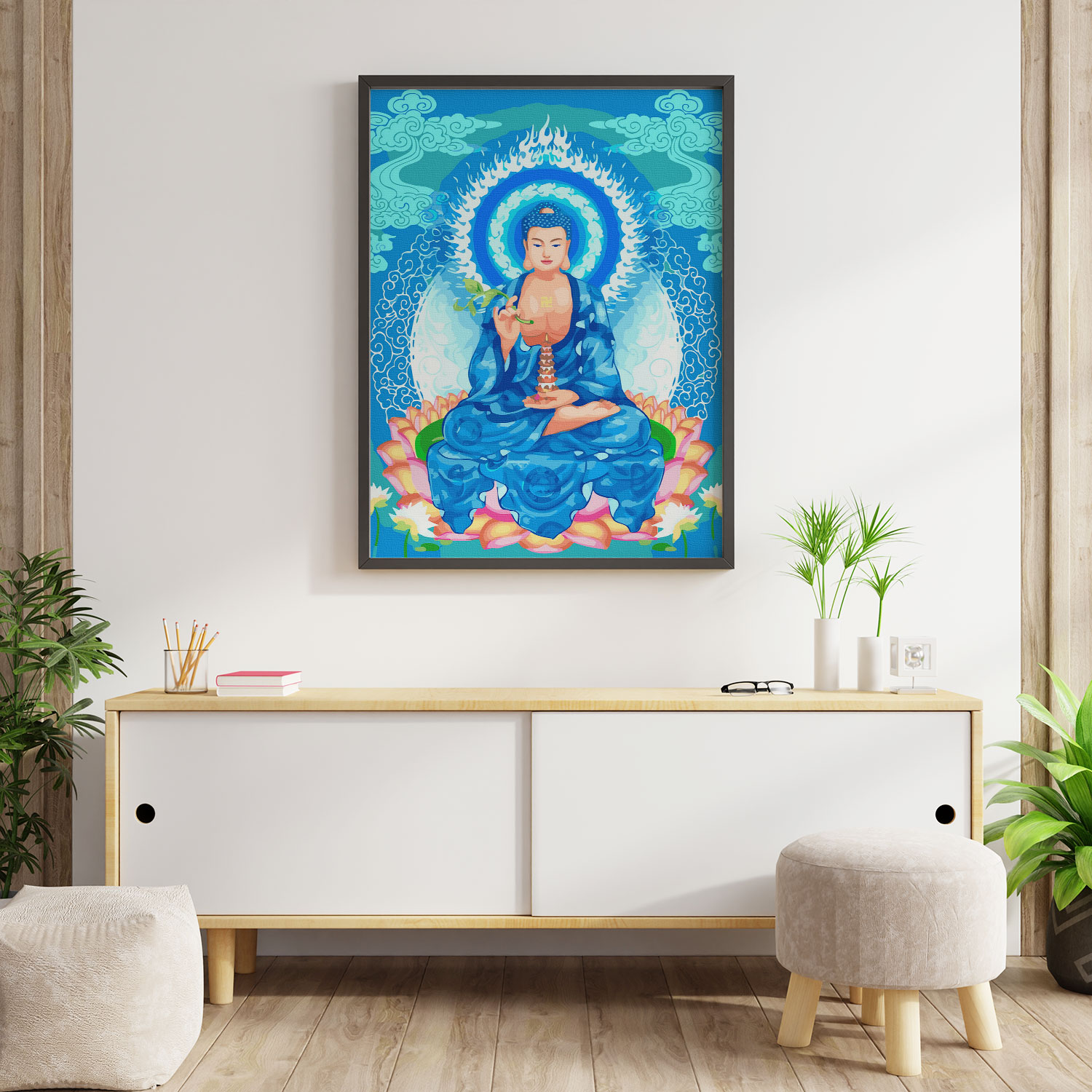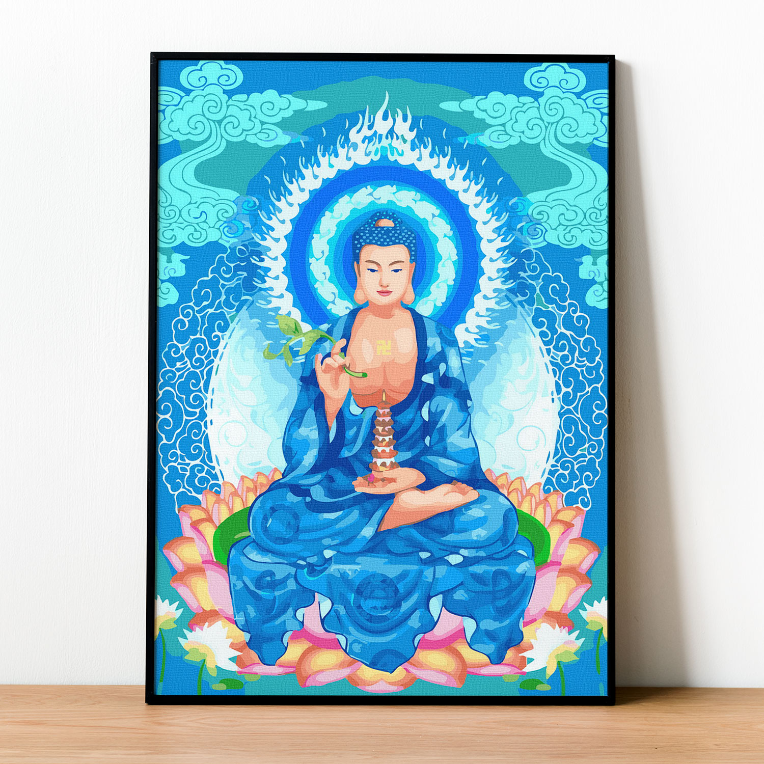 Tranh số hóa Phật Dược Sư Lưu Ly Quang đã căng khung 40x50cm KHUYẾN MÃI - ƯU ĐÃI