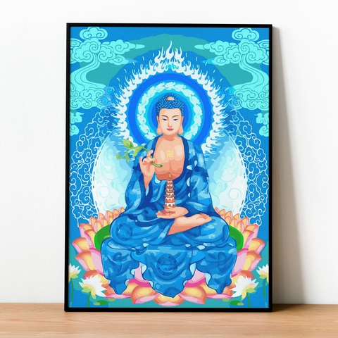 Tranh số hóa Phật Dược Sư Lưu Ly Quang đã căng khung 40x50cm