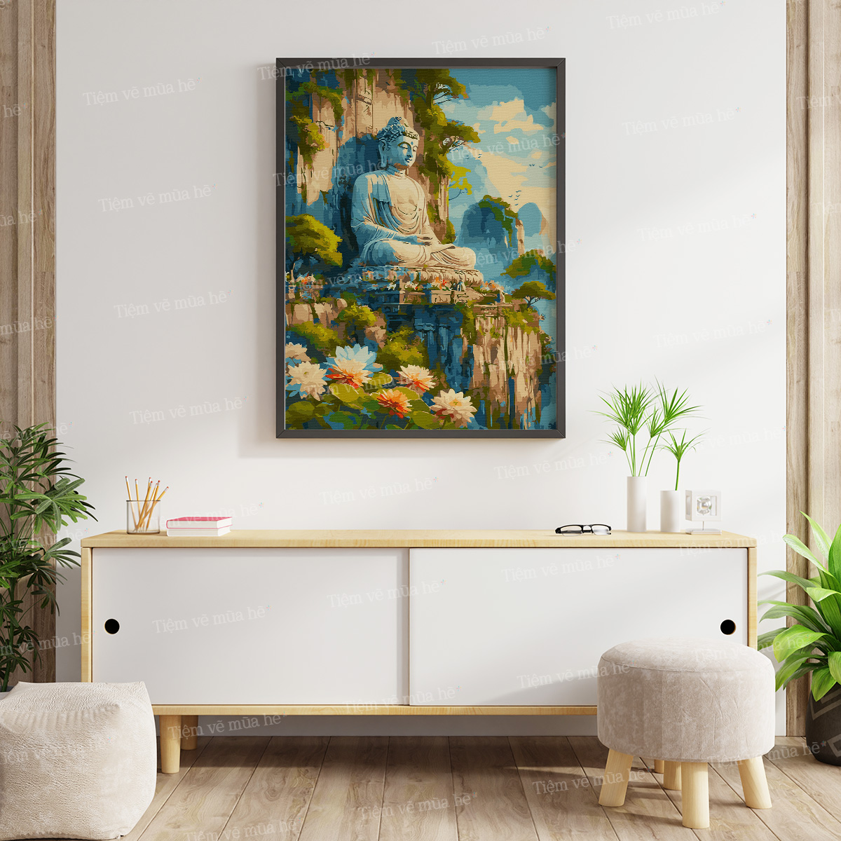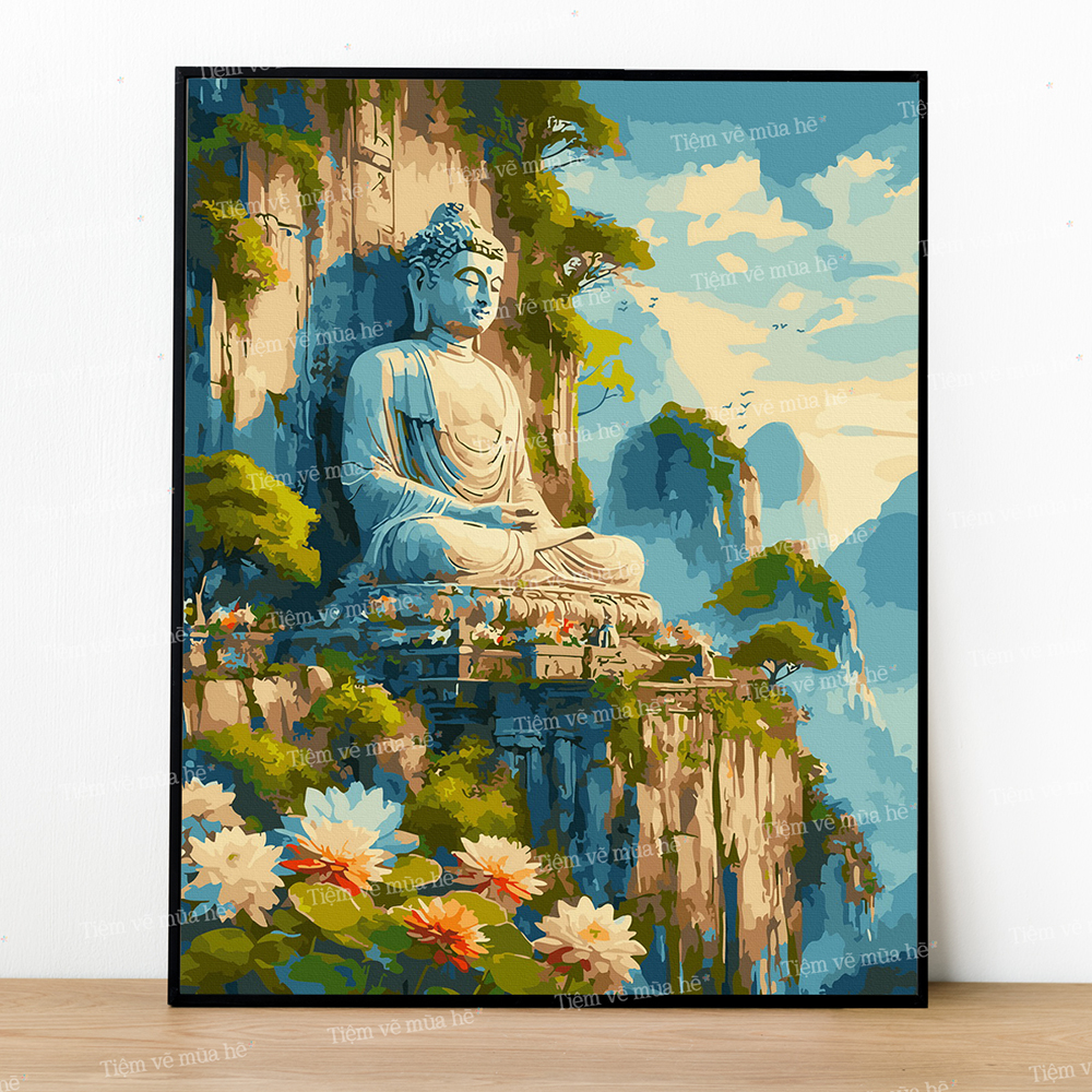 Tranh số hóa Phật tựa sơn hoa đã căng khung 40x50cm KHUYẾN MÃI - ƯU ĐÃI