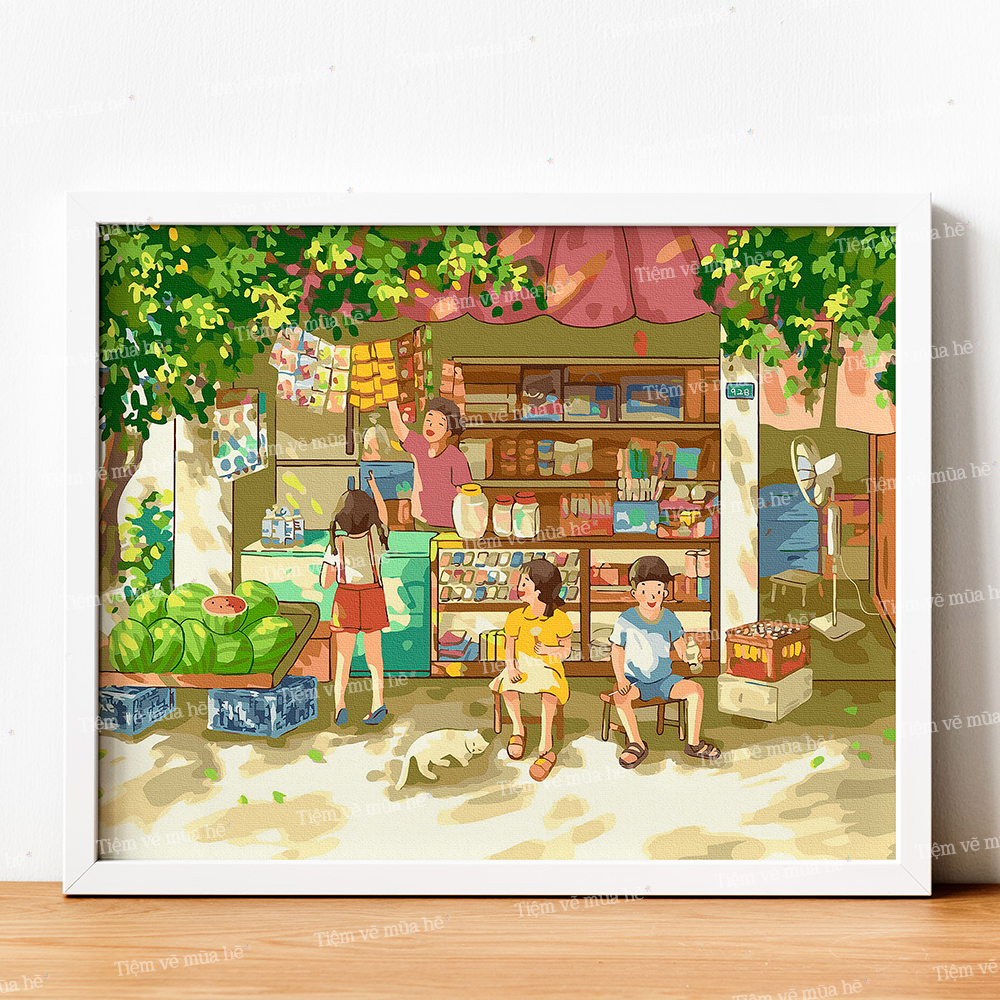 Tranh số hóa Tiệm tạp hóa tuổi thơ đã căng khung 40x50cm KHUYẾN MÃI - ƯU ĐÃI