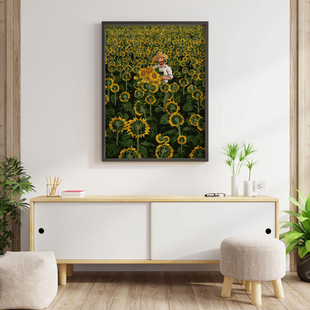 Tranh số hóa VanGogh Cánh đồng hoa hướng dương đã căng khung 40x50cm
