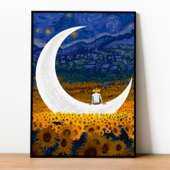 Tranh số hóa Vangogh Đêm trăng hướng dương đã căng khung 40x50cm KHUYẾN MÃI - ƯU ĐÃI
