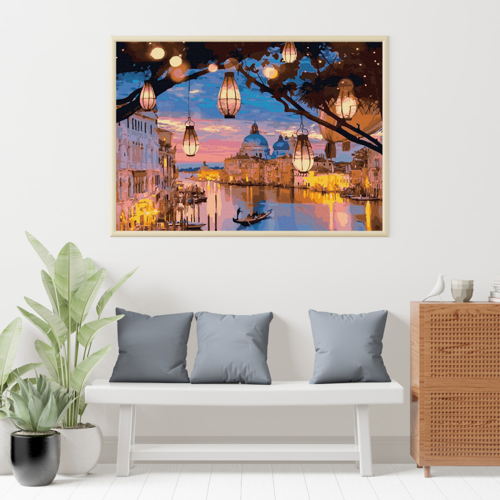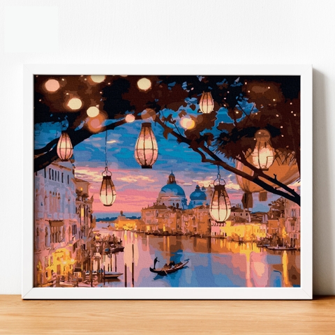 Tranh số hóa - Đèn lồng đêm Venice đã căng khung 40x50cm 28 màu KHUYẾN MÃI - ƯU ĐÃI